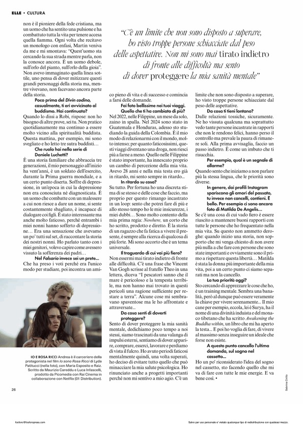 Nel 2024 è protagonista di Prima di noi e di Omen – L’origine del presagio. Al Festival del Cinema di Roma 2025 ha presentato tre nuovi progetti: Il Falsario di Stefano Lodovichi (in uscita su Netflix a febbraio 2026), Prima di noi di Daniele Luchetti (prossimamente su Rai 1) e Io sono Rosa Ricci, prequel di Mare Fuori, portato prima sul grande schermo e prossimamente su Netflix.